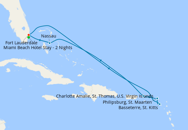 Eastern Caribbean from Ft. Lauderdale with Miami Beach Stay, 30 April 2026 (11 nights)
