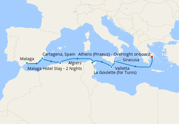 Day 3-12Cruise from Malaga to Athens (Piraeus) - Overnight onboard