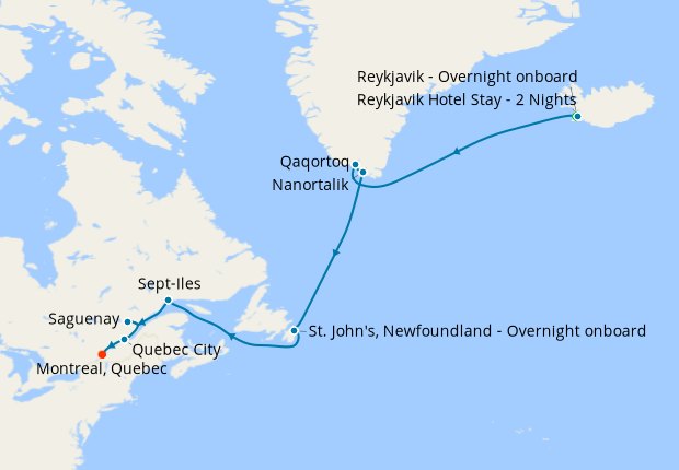 Day 3-17Cruise from Reykjavik - Overnight onboard to Montreal, Quebec