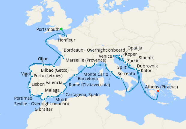 Cruise departs from Portsmouth arrives at: 6 am, departs at: 6 pm