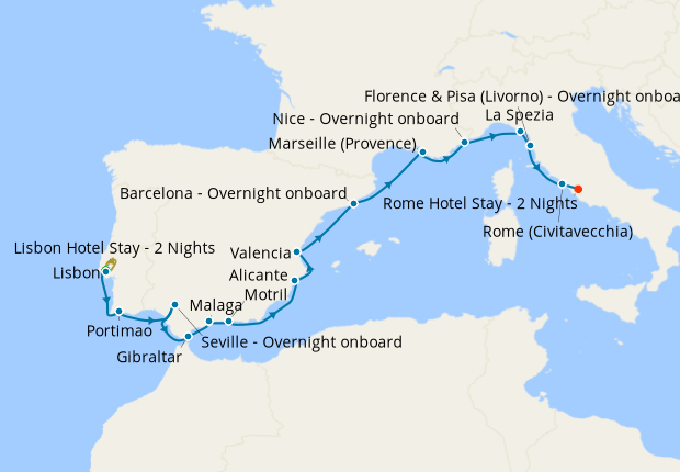 Day 3-21Cruise from Lisbon to Rome (Civitavecchia)