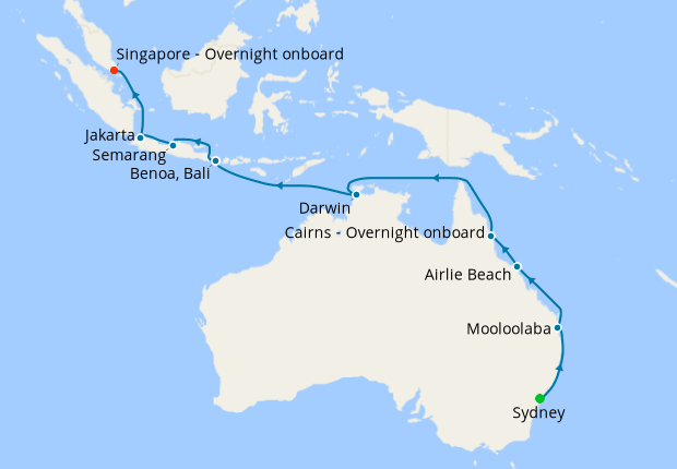 The ship was excellent and the crew were amazing, but the cruise for us was too long with two lots of three days at sea coupled with unfortunate weather conditions, we had wind force 6to8 Beaufort scale on the bow of the ship for all of the journey from Bali to Sydney. The ship coped very well with the weather but it did make walking around a little difficult!