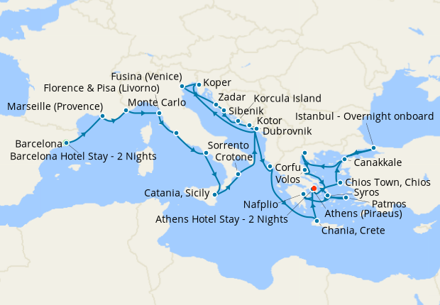 Explore ancient ruins, stroll along the vibrant harbour, and soak up the rich culture of Greece’s bustling port city.