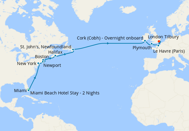 Day 3-21Cruise from Miami to London Tilbury