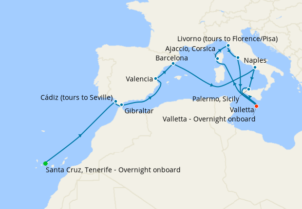 Med Adventure from Tenerife to Valletta, 19 March 2027 (20 nights)