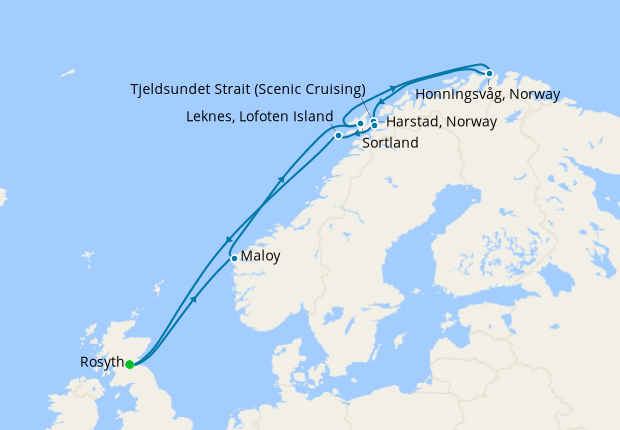 If you’re looking for an authentic Norwegian experience, rugged wilderness and Northern Lights included, then Harstad in Troms county is the perfect place to be; although, you’ll find Harstad town centre home to more than enough modern comforts for anyone looking to relax while ashore. From Grottebadet – an underground water park built inside a mountain – to Folkeparken – Harstad’s most popular woodland hiking region – and the Adolf Gun – a surviving Second World War artillery cannon at Trondenes Fort – there’s something for everyone to enjoy. And, with never-ending sunlight in the summer months, and the opportunity to see Aurora Borealis in the wintertime, Harstad promises to offer you a unique experience whenever you visit.