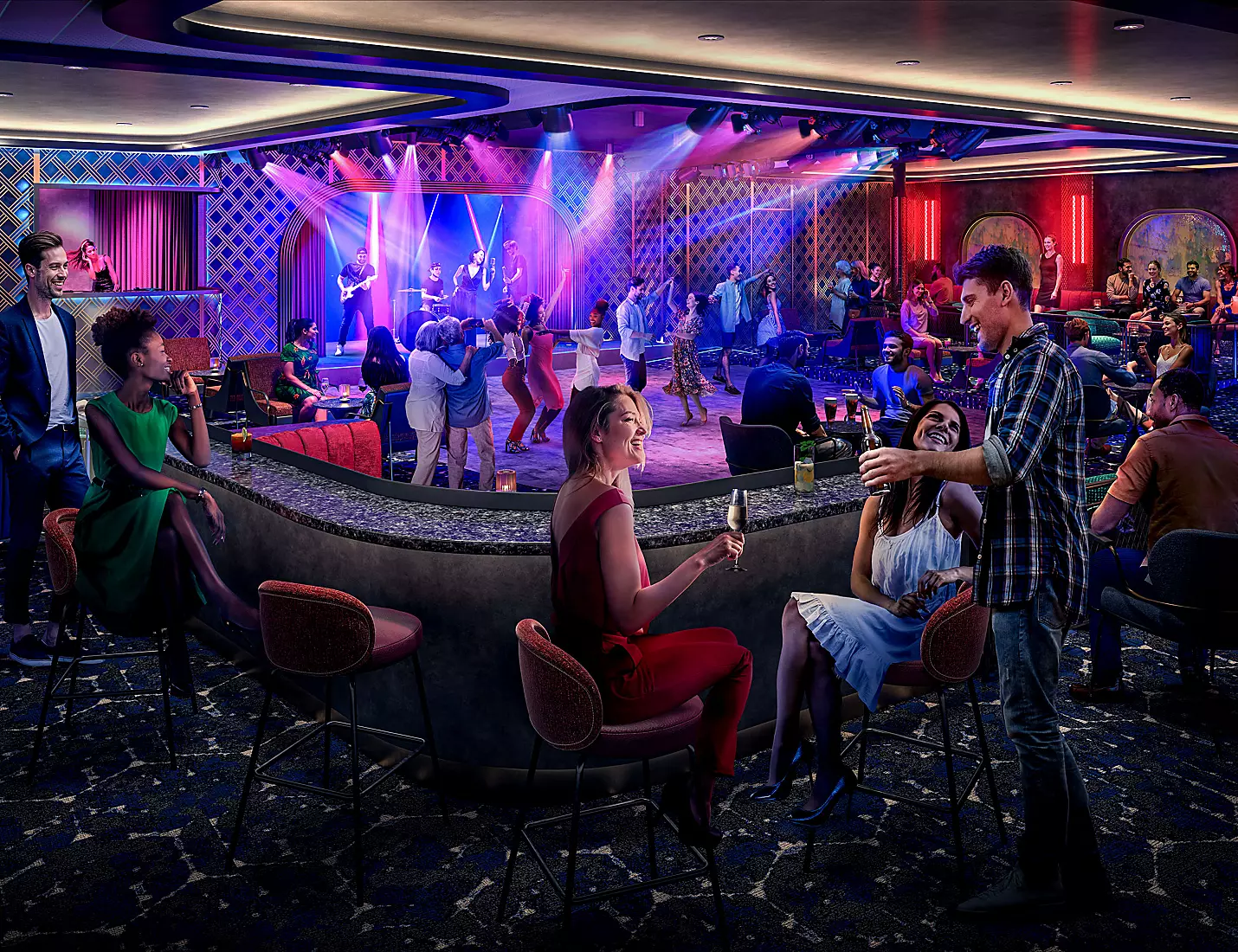 Late-night entertainment is getting a huge boost with Ovation of the Seas’ impressive 2026 Amplification, with an expanded Casino Royale space being introduced alongside the all-new Sound Cellar. Bringing a Hollywood-style scene to Ovation of the Seas’ nightlife, this adaptable live music venue will keep you on your dancing feet into the early hours – whether you’re vibing with the house band or partying to DJ-mixed beats.