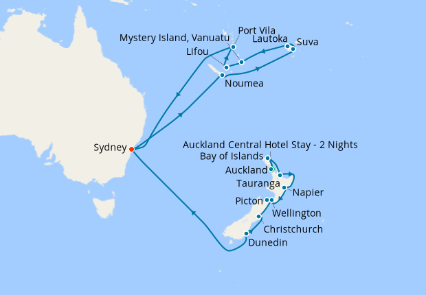 Auckland Stay, New Zealand, Sydney, Mystery Island & Fiji, 14 March 2026 (30 nights)