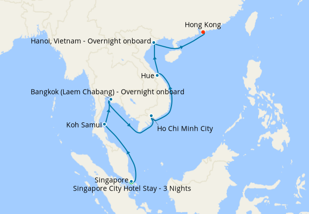 Northbound Asian Allure from Singapore to Hong Kong with Stay, 3 February 2028 (17 nights)