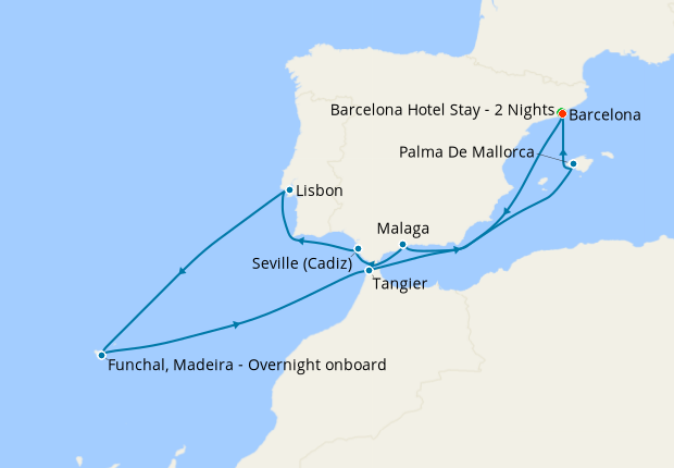 Spain, Portugal & Morocco from Barcelona with Stay, 5 June 2027 (14 nights)