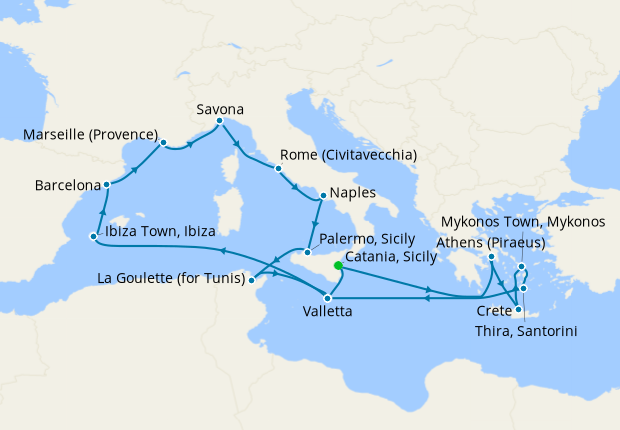 Today's Civitavecchia was born as an Etruscan village along the Tyrrhenian coast, but it is believed that the territory has been inhabited since the Neolithic era. The first documents mentioning the city date back to the year 107 AD; the same as the construction of the port which ended three years later. During a stop in Civitavecchia you can visit the Taurine Baths, the Michelangelo Fort, and the Cathedral.