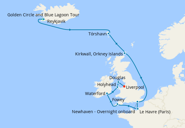 Voyage Across the Atlantic From Reykjavik to Liverpool with Golden Circle & Blue Lagoon Experience, 18 August 2027 (16 nights)