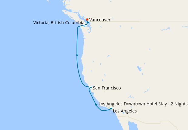 Day 3-8Cruise from Los Angeles to Vancouver