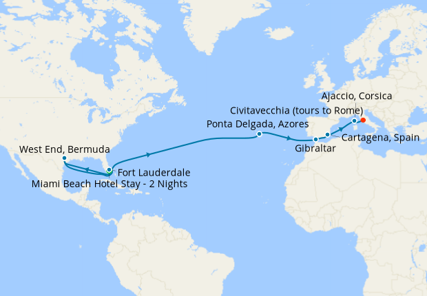 Western Mediterranean Passage to Southampton from Ft. Lauderdale with Miami Beach Stay, 14 April 2027 (17 nights)