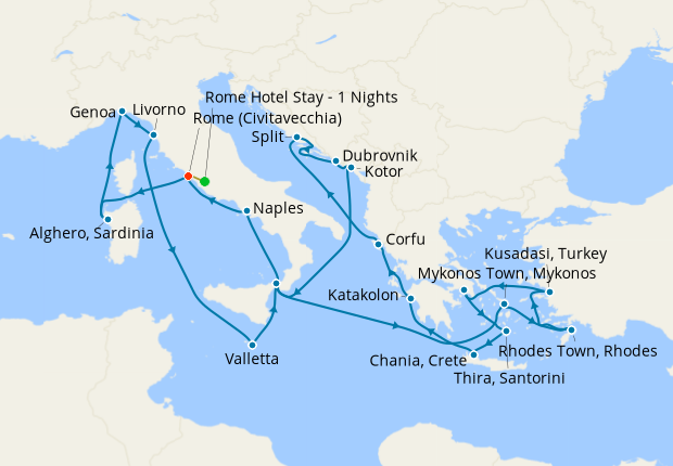 The Best Of The Mediterranean from Rome with 1nt Stay, 19 October 2026 (22 nights)