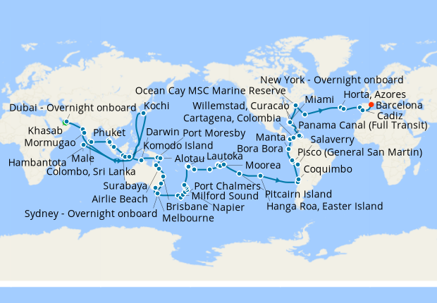 Cruise departs from Dubai - Overnight onboard arrives at: 12 am, departs at: 6 pm