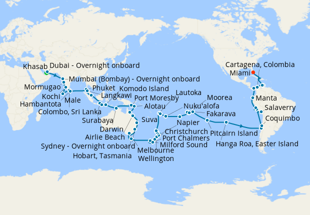 Cruise departs from Dubai - Overnight onboard arrives at: 12 am, departs at: 6 pm
