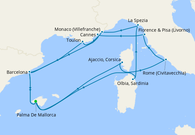 As the birthplace of Napoleon Bonaparte, Ajaccio and its museums and monuments is a must visit for history enthusiasts. During the day you’ll find beachgoers enjoying the sun and sea and locals relaxing in one of the many café’s while, after dark, the city is alive with thriving nightlife. Whether you’re here to relax or play, Ajaccio’s historic, pastel-coloured lanes and buildings will provide the perfect setting to a cruise holiday.
