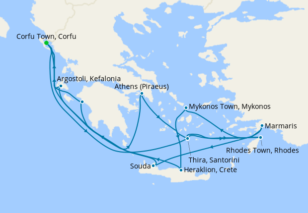 The island of Kefalonia has flourished after falling victim to a devastating earthquake in 1953, where almost every structure was demolished. Now, Argostoli is a thriving port city with shopping, restaurants, an active harbour and warm, friendly locals. You’ll find no shortage of traditional seafood, a quaint church, and a Blue Flag-awarded sandy beach. If you’re looking for a laid-back cruise holiday with plenty of sun, Argostoli is the place for you.