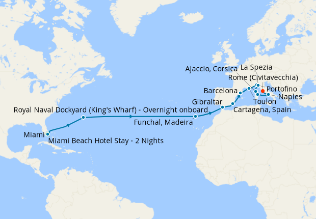 Grand Atlantic & Italian Stars from Miami to Rome with Miami Beach Stay, 5 April 2026 (23 nights)