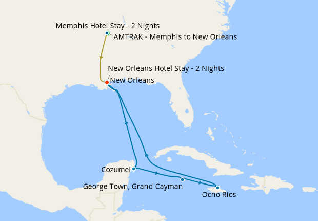 Memphis, New Orleans & Western Caribbean with Stays, 1 December 2026 (12 nights)