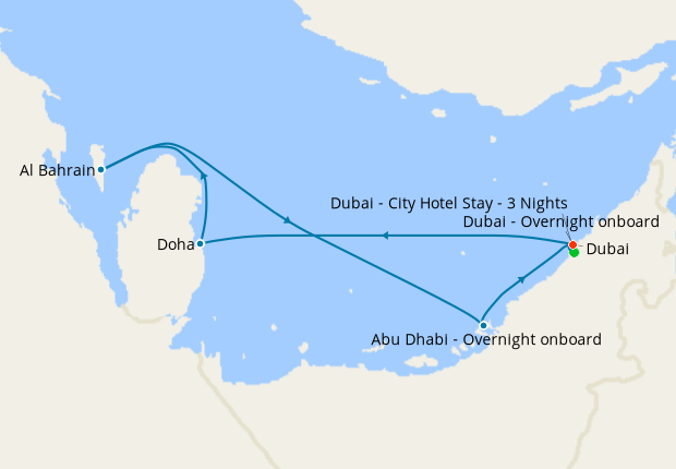 Day 11-12Dubai - Overnight onboardArrives at: 9 am
