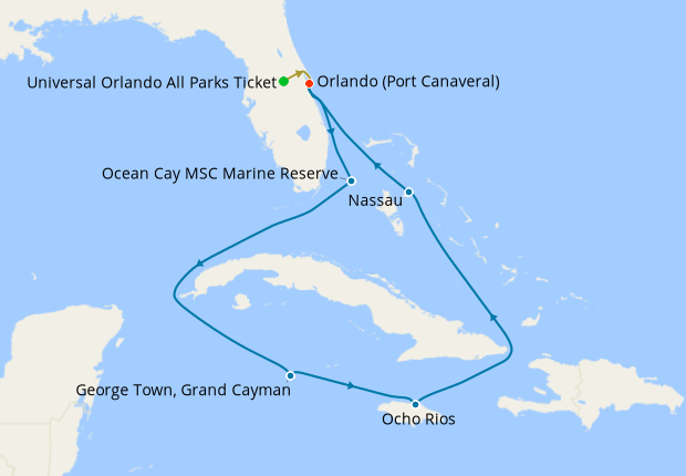 Caribbean & Bahamas from Port Canaveral with 7nt Orlando Stay and Car Hire