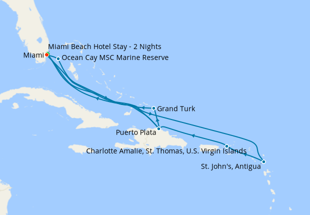 Day 10MiamiArrives at: 7 am, Departs at: 4 pm