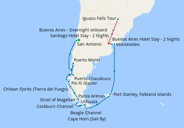 Day 4-18Cruise from San Antonio to Buenos Aires - Overnight onboard