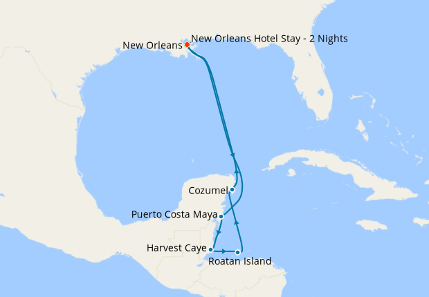 Caribbean & Harvest Caye from New Orleans with Stay, 20 March 2026 (10 nights)