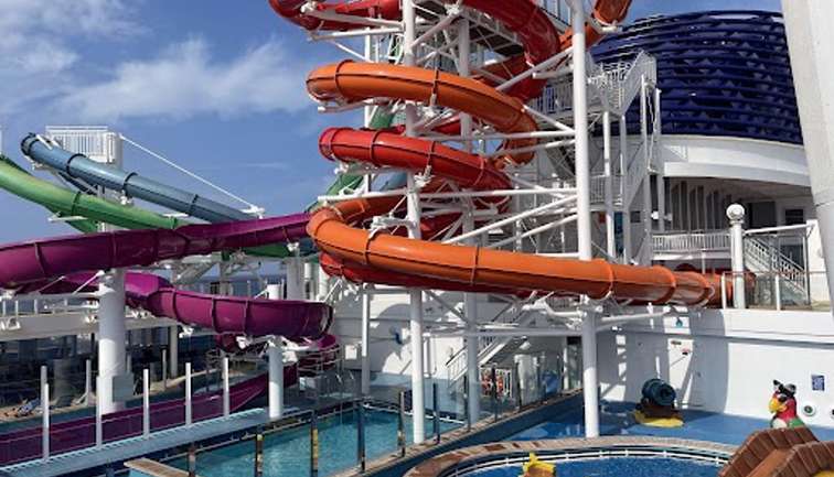 Excellent choice of entertainment & restaurants. Loved the little extras such as virtual darts & skittles (small fee for these). The IceBar was fun to do and included two drinks per person (extra charge). Different to have O'Sheehan's bar open 24/7 for drinks & food rather than buffet (not open 24/7). Food in here was just as fresh & tasty at breakfast as it was at midnight. Plenty on tables free most of the time. Ate at three of the speciality dinning as part of our package - worth the extra, though not sure good value if paid onboard prices. Cabin was spacious - smallest balcony we've ever had, with just enough room for two small chairs & stool/table. Wardrobe was very close to side of the bed, leaving little room to access clothes/shoes stored in there. We are not fans of large ships for reasons such as tender bookings, disembarkation at ports, large queues for restaurants etc, though none of these were an issue. Use the app wisely and you'll usually manage to get show & restaurant bookings without any problem. Drinks onboard were well above average and made fresh to order. Pity the weather was wet and windy - would have loved to use the outdoor waterpark areas & climbing trail. Hot tubs and pool open when weather permitting.