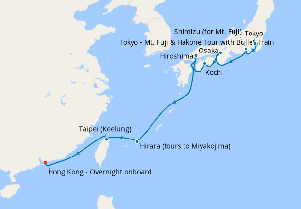 Day 5-15Cruise from Tokyo to Hong Kong - Overnight onboard
