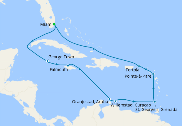 The capital of Grand Cayman, George Town is a popular stop off for those on a Caribbean cruise. This charming and colourful town offers a wide range of activities, such as incredible glass-bottom boat trips, intriguing tours of rum distilleries, lovely art galleries, first-rate shopping, delectable dining options, and a history museum. Excursions like submarine tours, snorkelling, diving, and parasailing are also available here- a fun for those thrill-seekers looking for an exciting activity during their stop off there.
