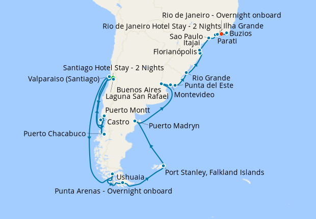 Day 4-37Cruise from Valparaiso (Santiago) to Rio de Janeiro - Overnight onboard