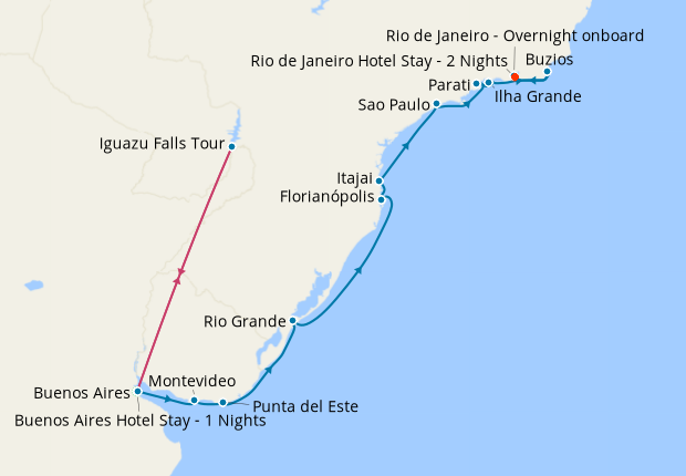 Day 6-18Cruise from Buenos Aires to Rio de Janeiro - Overnight onboard
