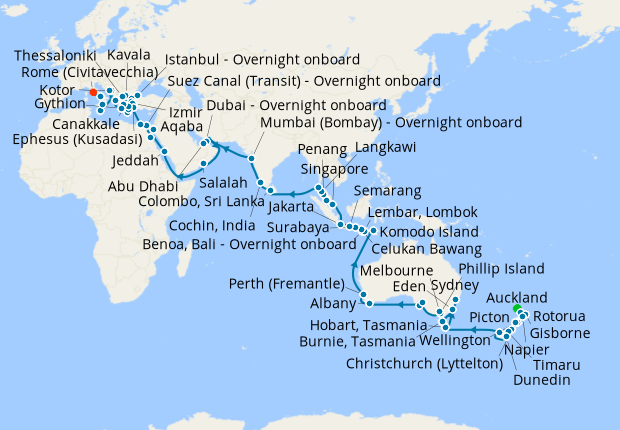 Cruise departs from Auckland arrives at: 7 am, departs at: 5 pm