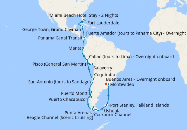 Panama Canal, Inca & South America with Miami Beach Stay, 14 November 2027 (34 nights)