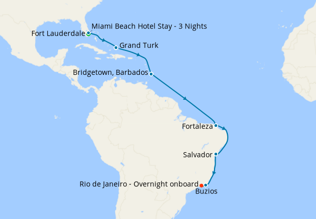 Day 4-21Cruise from Fort Lauderdale to Rio de Janeiro - Overnight onboard