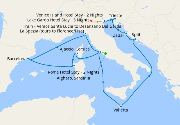Lake Garda, Venice & Rome Stays with Mediterranean & Adriatic from Civitavecchia, 21 July 2027 (21 nights)