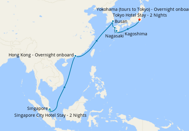 Day 4-17Cruise from Singapore to Yokohama (tours to Tokyo) - Overnight onboard