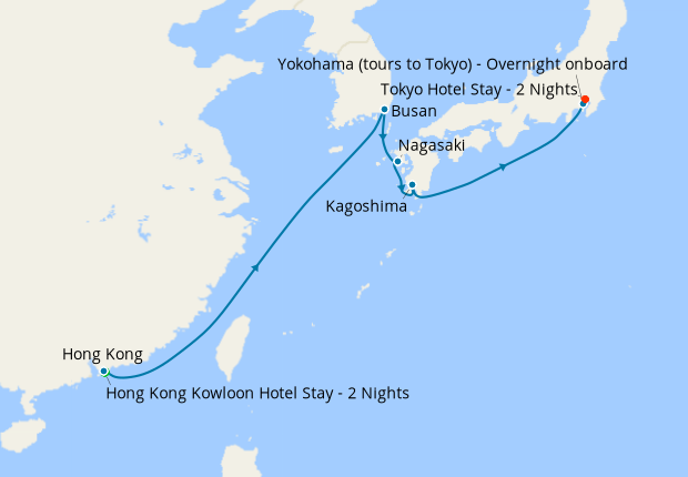 Day 4-12Cruise from Hong Kong to Yokohama (tours to Tokyo) - Overnight onboard