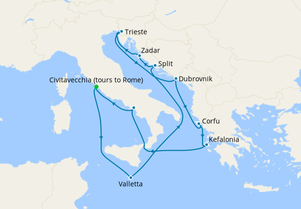 Today's Civitavecchia was born as an Etruscan village along the Tyrrhenian coast, but it is believed that the territory has been inhabited since the Neolithic era. The first documents mentioning the city date back to the year 107 AD; the same as the construction of the port which ended three years later. During a stop in Civitavecchia you can visit the Taurine Baths, the Michelangelo Fort, and the Cathedral.