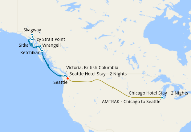 2nt pre-cruise stay in Chicago & 2nt stay in Seattle
