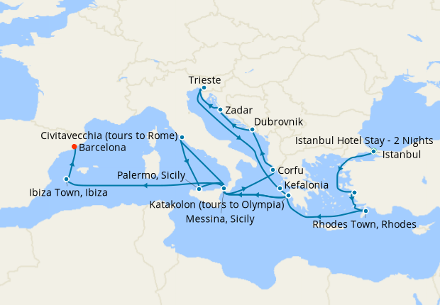 Mediterranean, Greek Islands & Adriatic from Istanbul with Stay, 6 October 2027 (23 nights)
