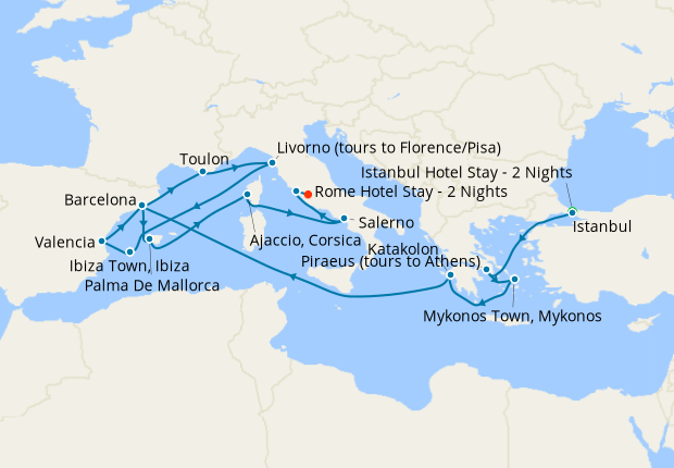 Turkey, Greek Islands & Mediterranean with Istanbul and Rome Stays, 9 May 2026 (25 nights)