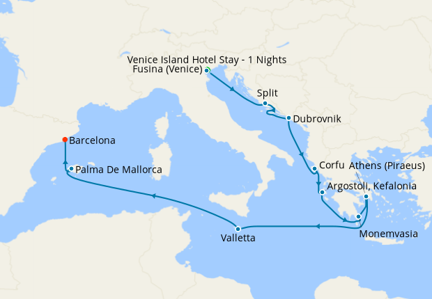 A Grecian Summer from Fusina (Venice) with Luxury Hotel Stay, 1 June 2027 (12 nights)