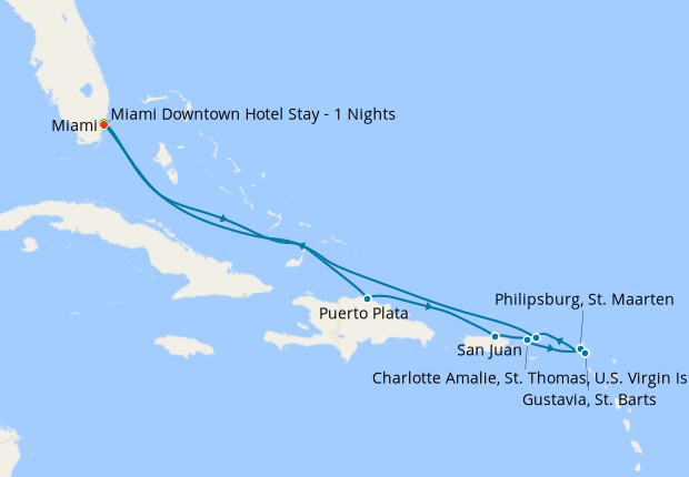 Island Rendezvous from Miami Fly Cruise, 27 November 2027 (12 nights)