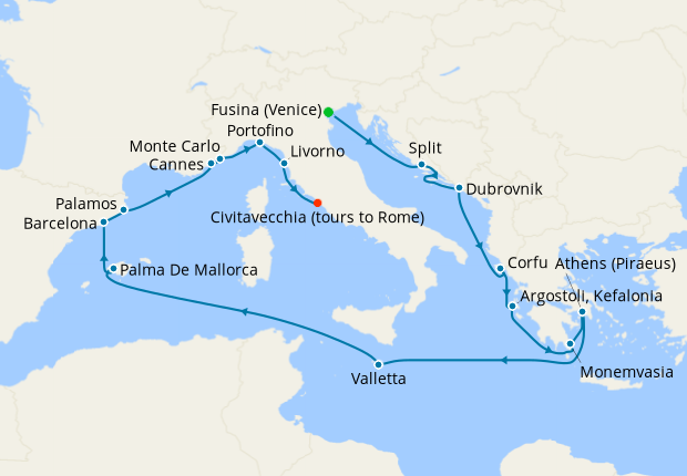 Mediterranean Reverie from Fusina (Venice), 2 June 2027 (18 nights)