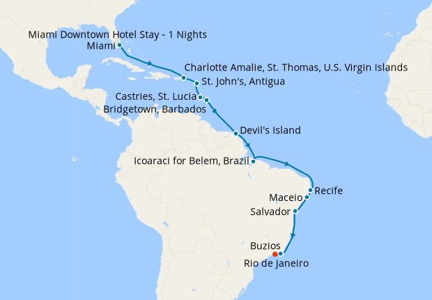 White Sands & Brazilian Sun from Miami - Fly Cruise, 3 January 2027 (20 nights)
