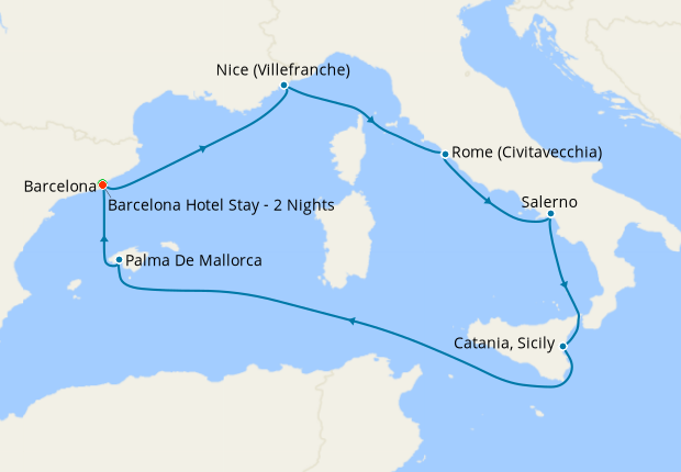 Italy, Spain & French Riviera from Barcelona with Stay, 10 September 2027 (9 nights)